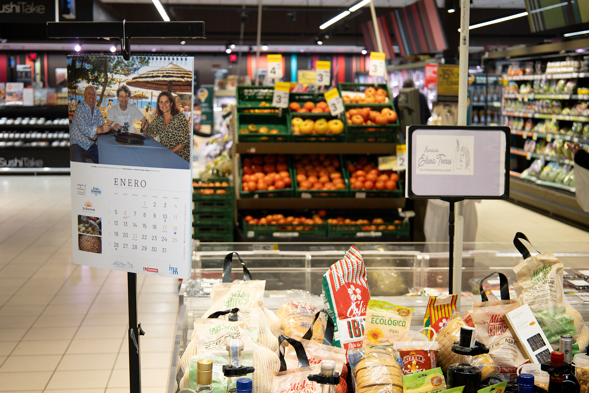 Grupo Eroski impulsa esta iniciativa desde sus inicios junto a la agencia de comunicación creativa Imam Comunicación con el apoyo de la agencia de diseño Dándole Vueltas. El VIII calendario solidario de la Asociación Elena Torres ha contado con el patrocinio de Sushi Take, Mister Chippy, Frutos Secos Ibiza Exquisite, Cafés Ibiza, Café del Mar SPIRITS, Samos Deli, DC10, Bodegas Can Rich, Familia Marí Mayans, Jose Antonio Verdugo Sedas – abogado y administrador de fincas, Studio Cifre, Bufete Jurídico Francisca-María Cardona Prats, VCC Consulting y TC Abogado y Economista. Además, han participado en esta acción solidaria Can Malacosta, Cofradía de Pescadores de San Antonio, Pescados Armonía, Almendras Capo, Gatzara, Sa Feixa, Forn Can Coves, Exclusivas Miró y La Movida Ibiza.